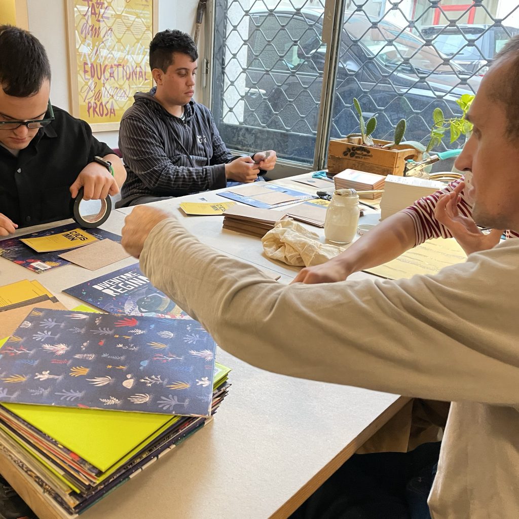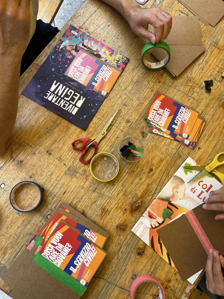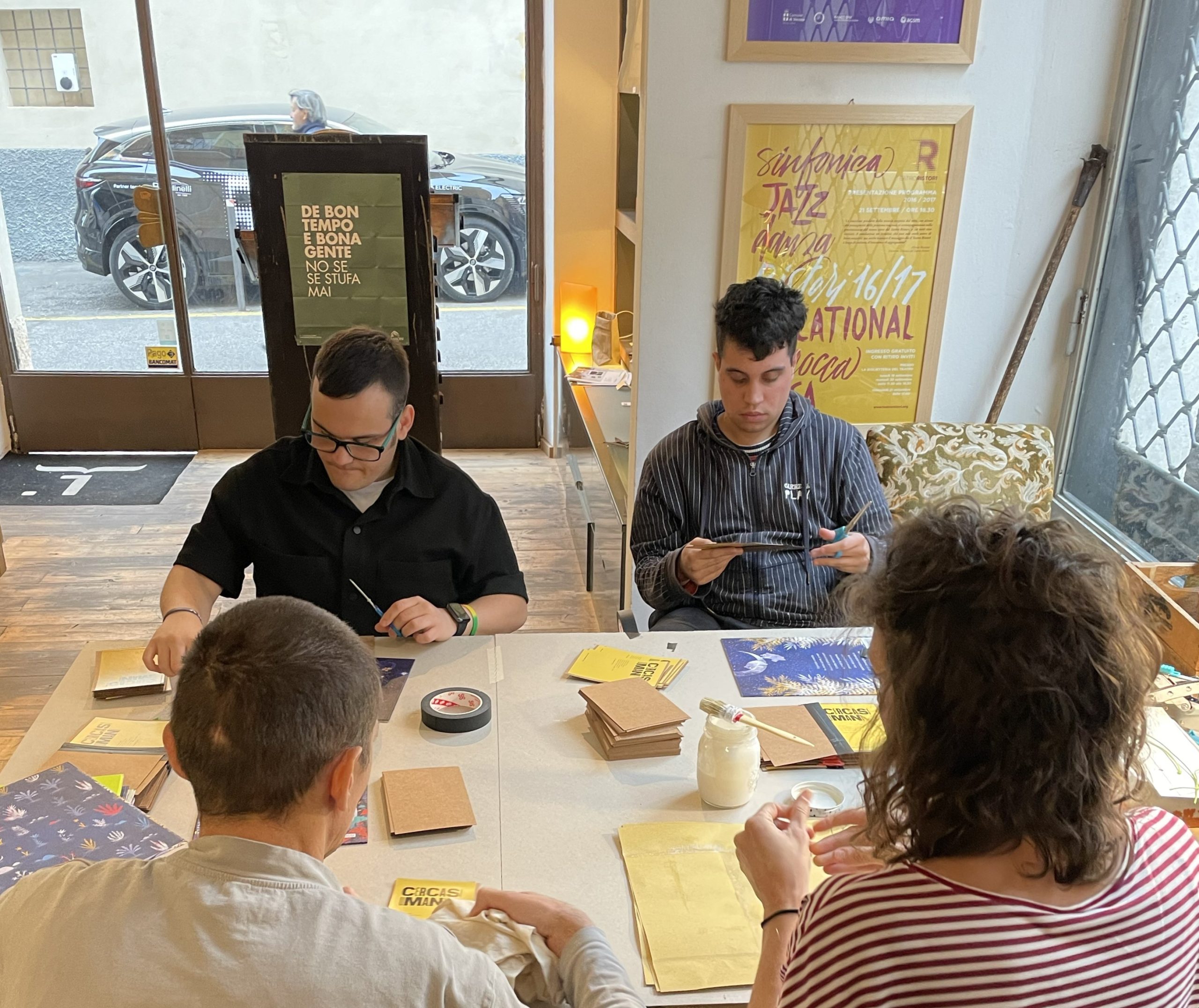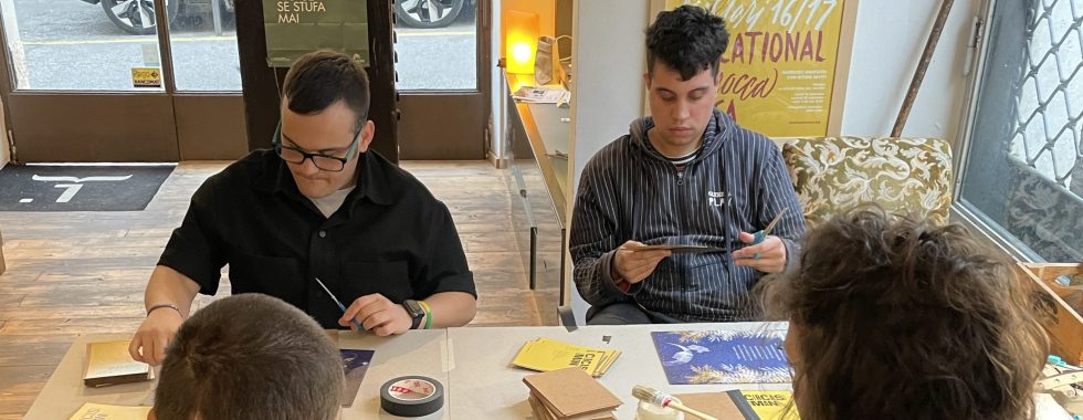 Assieme a Federica Nassetti di Yuuy, un gruppo di ragazzi del Civico 21 lavora per creare kit di piccola cartoleria utilizzando materiali riciclati.